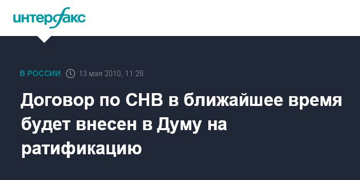 Москва. 13 мая. INTERFAX.RU - Глава МИД РФ Сергей Лавров заявил, что в ближайшее время в Госдуму будет внесен на ратификацию пакет документов по Договору о СНВ.