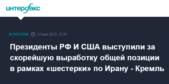 Президенты РФ И США выступили за скорейшую выработку общей позиции в рамках «шестерки» по Ирану - Кремль