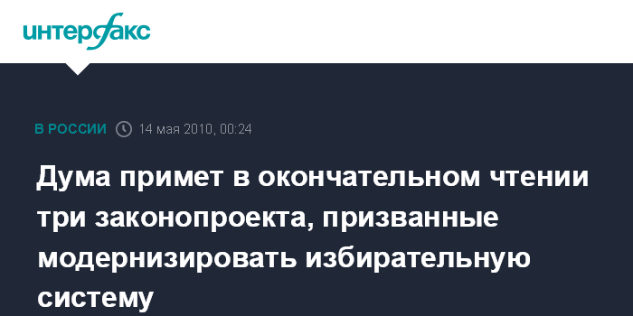 Москва. 14 мая. ИНТЕРФАКС - Госдума в пятницу намерена завершить работу над пакетом президентских законопроектов, направленных на совершенствование политической системы страны и избирательного законодательства.