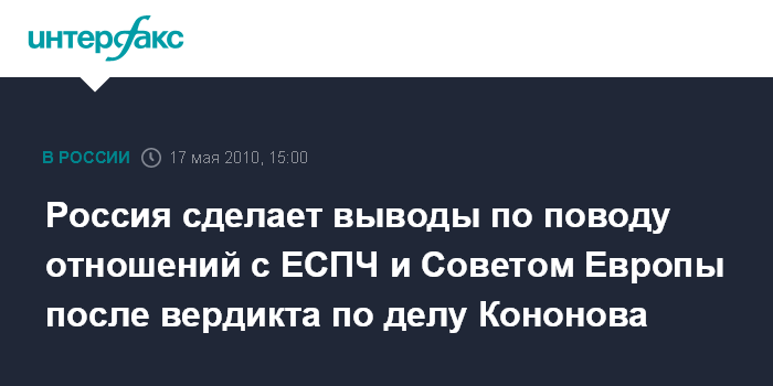 Россия сделает выводы по поводу отношений с ЕСПЧ и Советом Европы после вердикта по делу Кононова