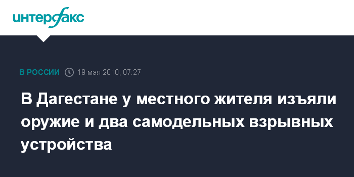 Ростов-на-Дону. 16 мая. ИНТЕРФАКС-ЮГ-Самодельное взрывное устройство, оружие и боеприпасы обнаружены во дворе одного из жилых домов в поселке Шамхал кировского района Дагестана, сообщили агентству "Интерфакс - Юг" в местном РУВД.