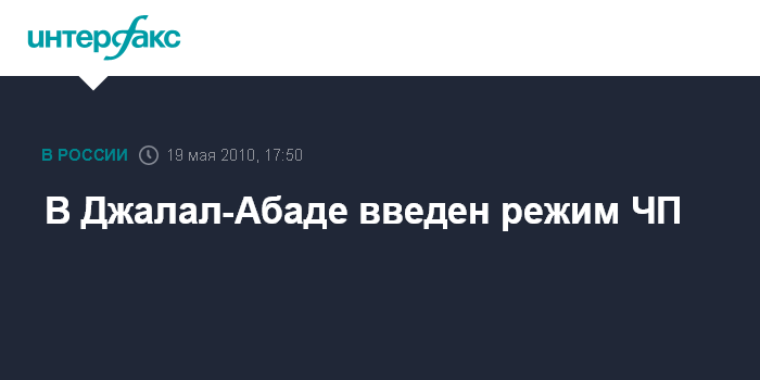 "В связи с непрекращающимися столкновениями среди населения, происходящими в Джалал-Абадской области, в интересах обеспечения безопасности граждан и в целях скорейшей нормализации обстановки и наведения общественного порядка временное киргизское правительство приняло декрет о введении чрезвычайного положения в Джалал-Абаде и Сузакском районе Джалал-Абадской области до 1 июня 2010 г. с установлением комендантского часа с 20:00 до 6 утра", - говорится в тексте декрета.