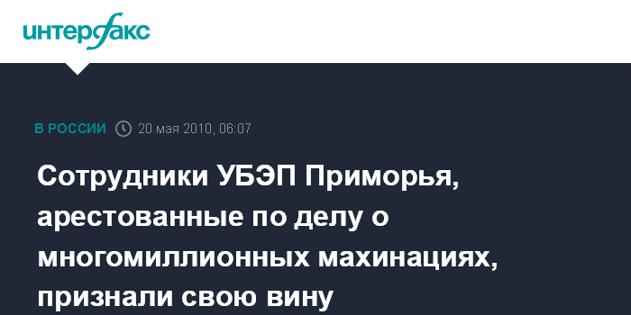Владивосток. 20 мая. ИНТЕРФАКС-ДАЛЬНИЙ ВОСТОК- Два сотрудника УБЭП Приморья, которых обвиняют в мошенничестве на сумму более чем в 9 млн рублей, признали свою вину и отказались от жалобы на свой арест.