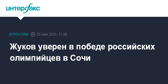 Москва. 20 мая. INTERFAX.RU - Вице-премьер РФ Александр Жуков, который является единственным кандидатом на пост президента Олимпийского комитета России (ОКР), выразил уверенность, что российская команда обязательно победит на зимней Олимпиаде в Сочи в 2014 году.