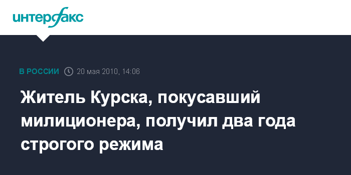 Курск. 20 мая. INTERFAX.RU - Промышленный районный суд Курска вынес приговор 29-летнему Анатолию Ровнягину, укусившему милиционера и порвавшему зубами его форму.