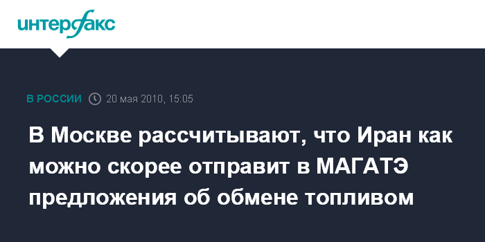 В Москве рассчитывают, что Иран как можно скорее отправит в МАГАТЭ предложения об обмене топливом