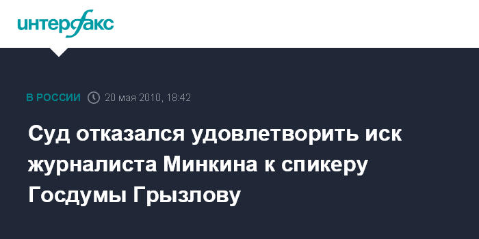 Суд отказался удовлетворить иск журналиста Минкина к спикеру Госдумы Грызлову
