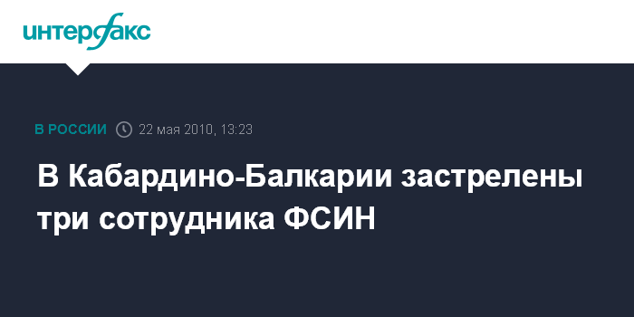 Москва. 22 мая. INTERFAX.RU - Три сотрудника УФСИН по Кабардино-Балкарии погибли и один ранен в результате обстрела в субботу утром, сообщил агентству "Интерфакс-Юг" источник в правоохранительных органах республики.