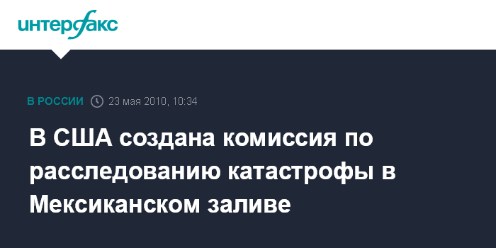 Вашингтон. 23 мая. INTERFAX.RU - Президент США Барак Обама назначил независимую комиссию, которая займется расследованием катастрофы нефтяной платформы в Мексиканском заливе. Эту комиссию возглавили бывший сенатор-демократ Боб Грэм и бывший министр по вопросам окружающей среды республиканец Уильям Рейли. Их задачей станет в течение шести месяцев подготовить доклад о причинах катастрофы.