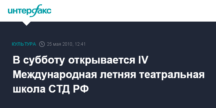 Москва. 25 мая. INTERFAX.RU - В субботу, 29 мая, пройдет церемония открытия и пресс-конференция, посвященная IV Международной летней театральной школе Союза театральных деятелей России. В работе четвертой Школы примут участие 85 молодых актеров из 30 стран. На протяжении месяца (с 29 мая по 26 июня) они будут заниматься под руководством известных российских педагогов. По традиции планируется проведение и серии мастер-классов с деятелями театра и кино: Александром Калягиным, Арменом Джигарханяном, Камой Гинкасом, Андреем Кончаловским, Сергеем Женовачом, Ириной Мирошниченко.