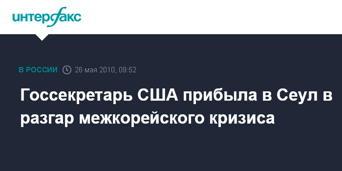 Ранее госдеп США заявил, что на встрече с руководителями Южной Кореи Х.Клинтон намеревалась обсудить вопросы региональной безопасности и международного сотрудничества.