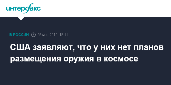 Вашингтон. 26 мая. INTERFAX.RU - США не намерены размещать свои вооружения в космосе, заявила в интервью "Интерфаксу" замгоссекретаря США Эллен Таушер.