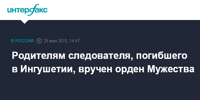 Родителям следователя, погибшего в Ингушетии, вручен орден Мужества