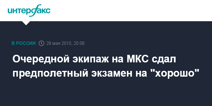 Москва. 28 мая. INTERFAX.RU - Основной экипаж очередной экспедиции на международную космическую станцию (МКС) - российский космонавт Федор Юрчихин, астронавты НАСА Даглас Уилок и Шеннон Уокер - сдали предполетный экзамен.