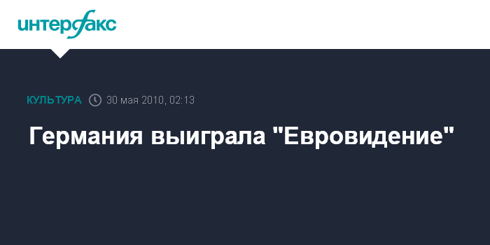Москва. 30 мая. INTERFAX.RU - Певица Лена Майер-Ландрут из Германии стала победительницей 55-го музыкального конкурса "Евровидение", финал которого прошел в ночь с субботы на воскресенье на "Теленор-арене" в Осло. Майер-Ландрут исполняла песню ""Satellite" на английском языке и набрала в финале 246 баллов.