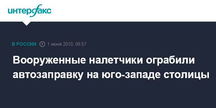 Москва. 1 июня. INTERFAX.RU - В Москве совершено вооруженное нападение на автозаправку, расположенную на Профсоюзной улице.
