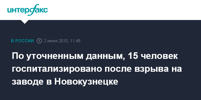 По уточненным данным, 15 человек госпитализировано после взрыва на заводе в Новокузнецке