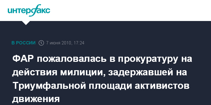 ФАР пожаловалась в прокуратуру на действия милиции, задержавшей на Триумфальной площади активистов движения