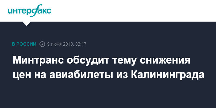 "Жители Калининградской области должны иметь доступные цены на авиабилеты по таким направлениям, как Москва и Санкт-Петербург. Этот вопрос будет предметно рассматриваться уже 9 июня на специальном совещании в Минтрансе РФ. Мы примем некое решение, которое позволит по доступным ценам организовать полеты из Калининграда ", - сказал И.Клебанов.