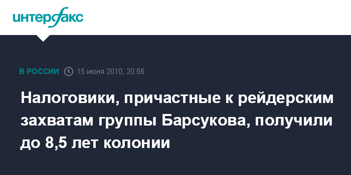 Налоговики, причастные к рейдерским захватам группы Барсукова, получили до 8,5 лет колонии