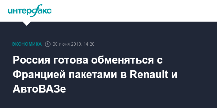 Жуковский. 30 июня. INTERFAX.RU - Россия готова обменяться с Францией пакетами в Renault и ОАО "АвтоВАЗ", сообщил премьер-министр Владимир Путин.
