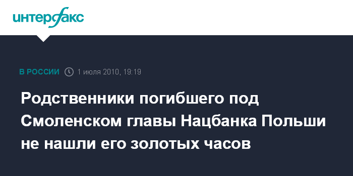 Родственники погибшего под Смоленском главы Нацбанка Польши не нашли его золотых часов