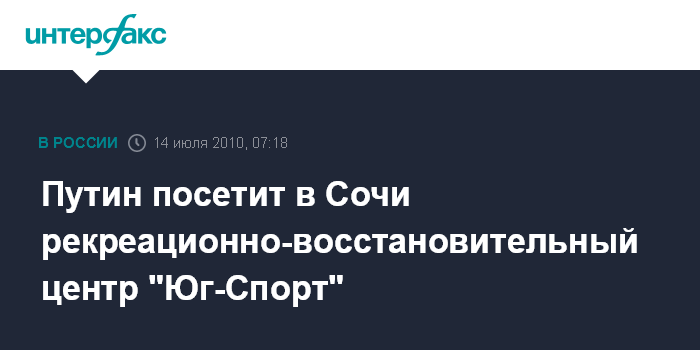 Путин посетит в Сочи рекреационно-восстановительный центр "Юг-Спорт"