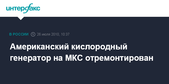 Как сообщалось, система OGS вышла из строя 5 июля, и до починки, как рассказали "Интерфаксу-АВН" в подмосковном Центре управления полетами, восполнение кислорода на МКС осуществлялось из баллонов российских грузовых кораблей "Прогресс М", пристыкованных к станции, а также с помощью российской системы получения кислорода "Электрон-ВМ", установленной в модуле "Звезда".