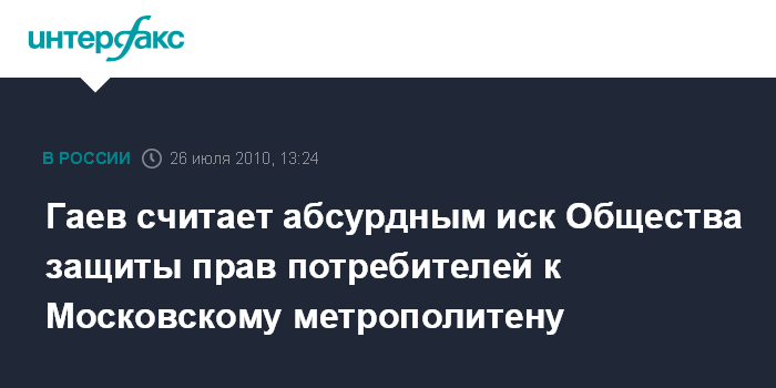 Гаев считает абсурдным иск Общества защиты прав потребителей к Московскому метрополитену