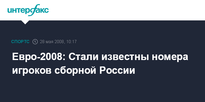 Москва. 28 мая. INTERFAX.RU – Вчера стали известны постоянные номера, под которыми футболисты сборной России будут выступать на чемпионате Европы, сообщает официальный сайт РФС.