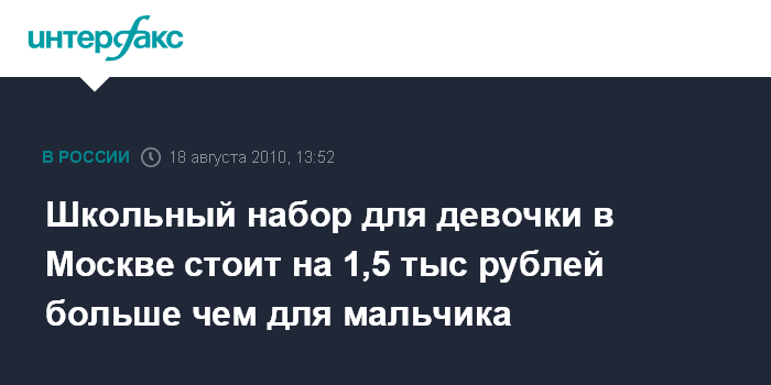 Школьный набор для девочки в Москве стоит на 1,5 тыс рублей больше чем для мальчика