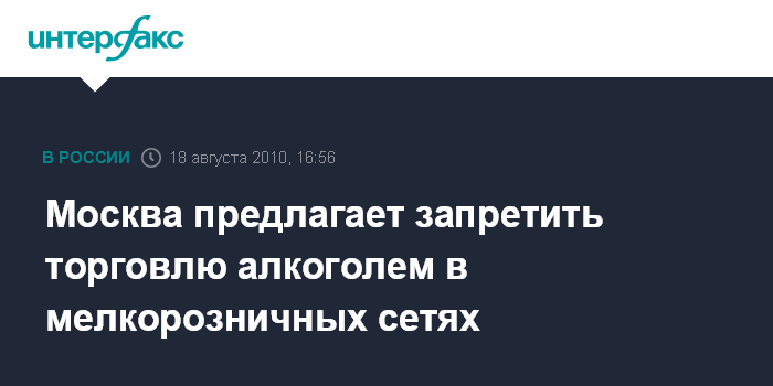 Москва. 18 августа. INTERFAX.RU - Столичные власти выступают за запрет торговли алкогольной продукцией в мелкорозничных сетях, заявила в среду журналистам исполняющая обязанности руководителя департамента потребительского рынка и услуг Москвы Валентина Варфоломеева.