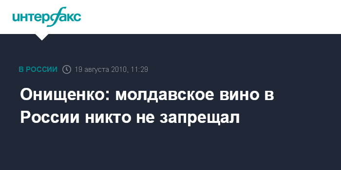 Москва. 19 августа. INTERFAX.RU - Запрета на ввоз в Россию вина из Молдавии нет, сообщил глава Роспотребнадзора, главный государственный санитарный врач РФ Геннадий Онищенко.