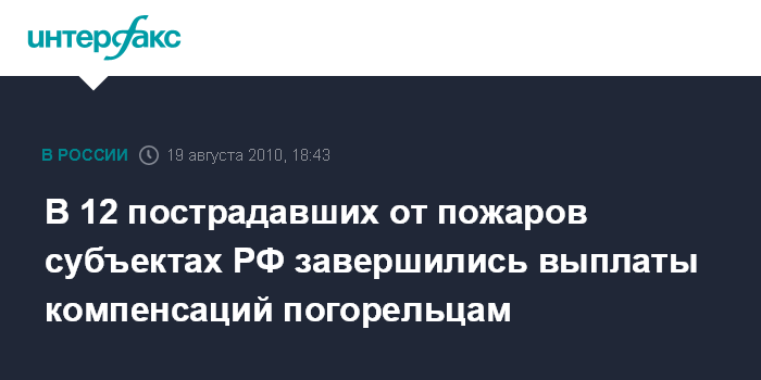 В 12 пострадавших от пожаров субъектах РФ завершились выплаты компенсаций погорельцам