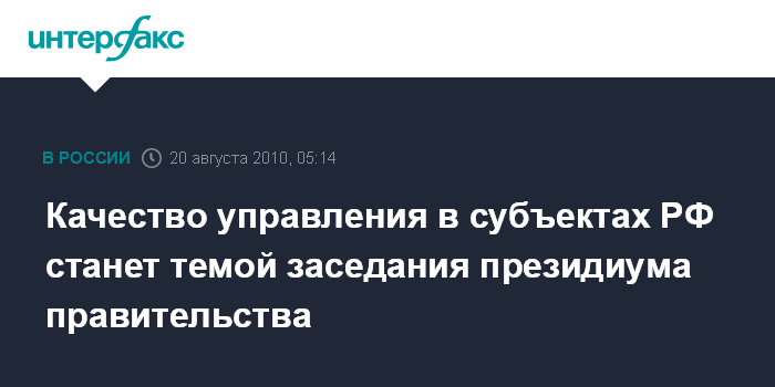 Качество управления в субъектах РФ станет темой заседания президиума правительства
