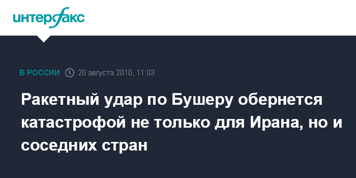 Москва. 20 августа. INTERFAX.RU - Возможное нанесение Израилем ракетно-бомбового удара по бушерскому атомному реактору в Иране приведет к катастрофе регионального масштаба, считает директор Института радиационных проблем Национальной академии наук Азербайджана (НАНА) Адиль Гарибов.