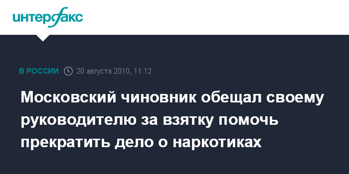 Московский чиновник обещал своему руководителю за взятку помочь прекратить дело о наркотиках