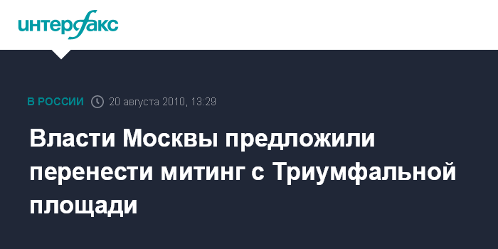Москва. 20 августа. INTERFAX.RU - Власти Москвы предложили организаторам митинга 31 августа на Триумфальной площади перенести акцию в другое место в связи с начинающимися строительными работами.