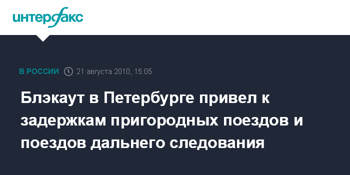 Блэкаут в Петербурге привел к задержкам пригородных поездов и поездов дальнего следования
