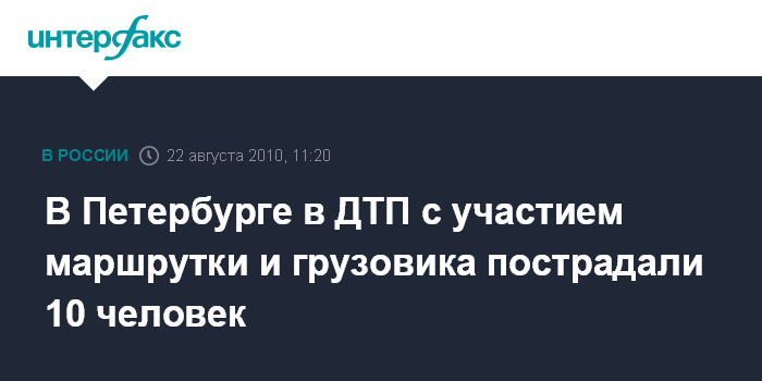 Санкт-Петербург. 22 августа. INTERFAX.RU - На севере Петербурга в воскресенье утром столкнулись маршрутка и грузовик, сообщили "Интерфаксу" в воскресенье в Главном управлении МЧС по городу. ДТП произошло около 9:00 мск на 22 км Выборгского шоссе. "Маршрутка, шедшая от станции метро "Проспект Просвещения" до поселка Рощино, столкнулась с грузовиком "Вольво". Пострадали 10 человек, шестерым помощь была оказана на месте", - сказал собеседник агентства. Четыре человека были госпитализированы.