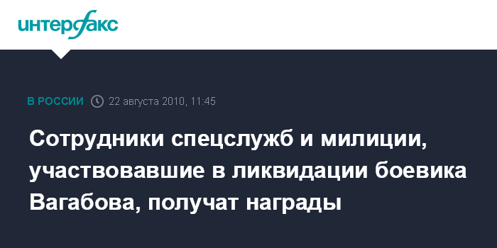 Сотрудники спецслужб и милиции, участвовавшие в ликвидации боевика Вагабова, получат награды