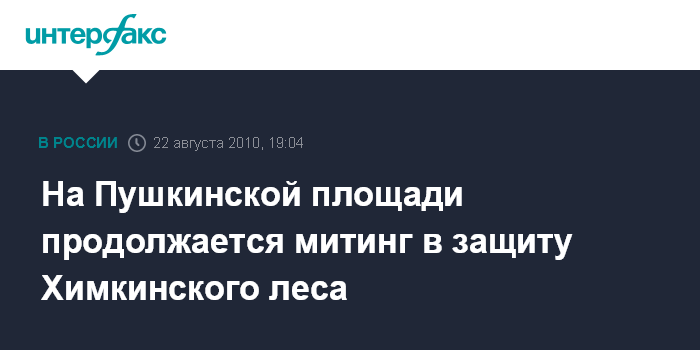 Москва. 22 августа. INTERFAX.RU - Митинг в защиту Химкинского леса на Пушкинской площади проходит без серьезных инцидентов, однако с большими техническими сложностями. Как передает корреспондент "Интерфакса", в митинге, по оценкам правоохранительных органов, принимают участие более 500 человек.