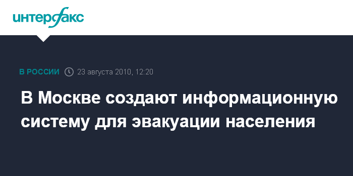 Москва. 23 августа. INTERFAX.RU - Столичные власти создают автоматизированную информационную систему для принятия решений при планировании и проведении эвакуационных мер в городе, сообщили "Интерфаксу" в горадминистрации в понедельник.
