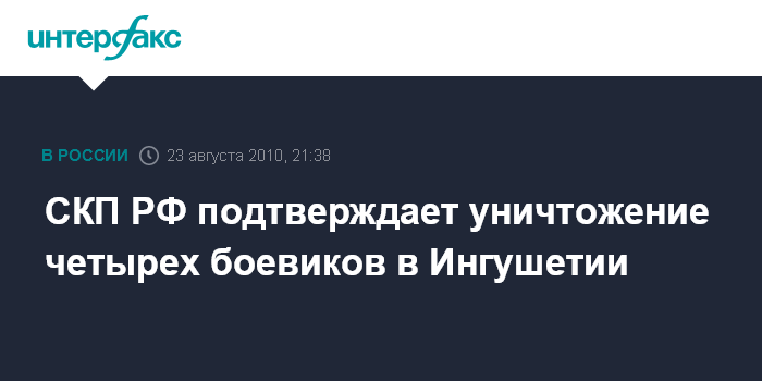 Назрань. 23 августа. INTERFAX.RU - Официальный представитель СКП РФ по Ингушетии подтвердил агентству "Интерфакс", что в Назрани ликвидированы четыре члена незаконных вооруженных формирований.