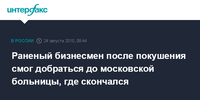 Раненый бизнесмен после покушения смог добраться до московской больницы, где скончался