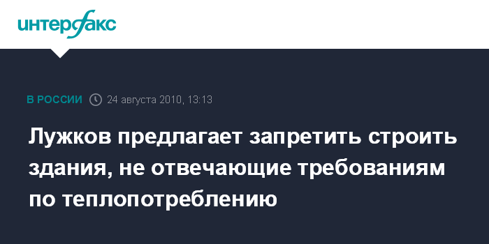 Москва. 24 августа. INTERFAX.RU - Столичный градоначальник Юрий Лужков хочет официально запретить строительство зданий, которые не отвечают современным жестким требованиям к теплопотреблению.