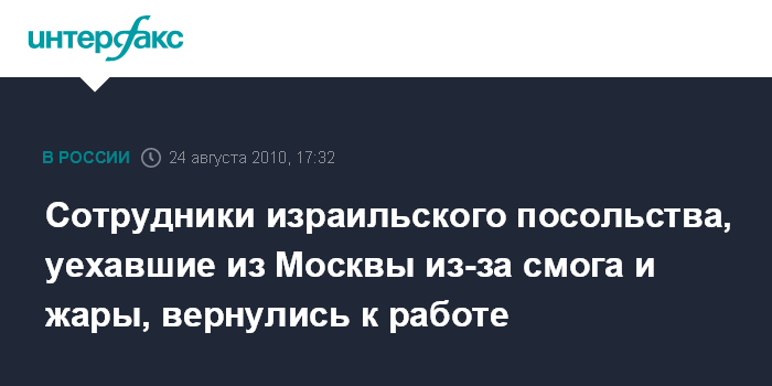 Сотрудники израильского посольства, уехавшие из Москвы из-за смога и жары, вернулись к работе