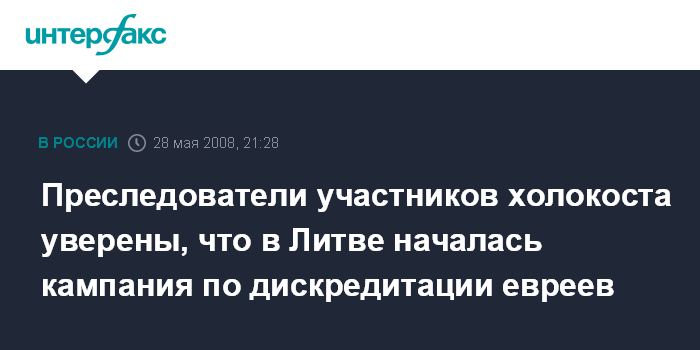 Вильнюс. 28 мая. ИНТЕРФАКС - Центр им. Симона Визенталя из Израиля, преследующий лиц, причастных к еврейскому геноциду, считает, что в Литве начата кампания по дискредитации лиц еврейского происхождения.