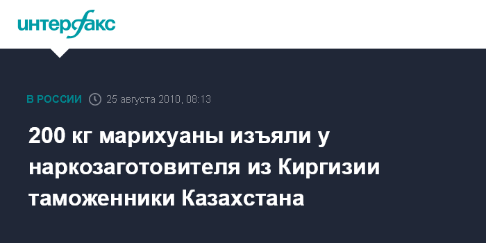 Тараз. 25 августа INTERFAX.RU - Сотрудники областного департамента таможенного контроля (ДТК) по Жамбылской области Казахстана (на юге) задержали гражданина Киргизии, у которого было обнаружено 200 килограмм марихуаны, сообщил в среду агентству "Интерфакс" пресс-секретарь ДТК Кудайберген Рысдаулет.