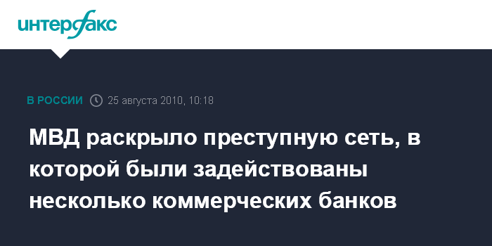 МВД раскрыло преступную сеть, в которой были задействованы несколько коммерческих банков